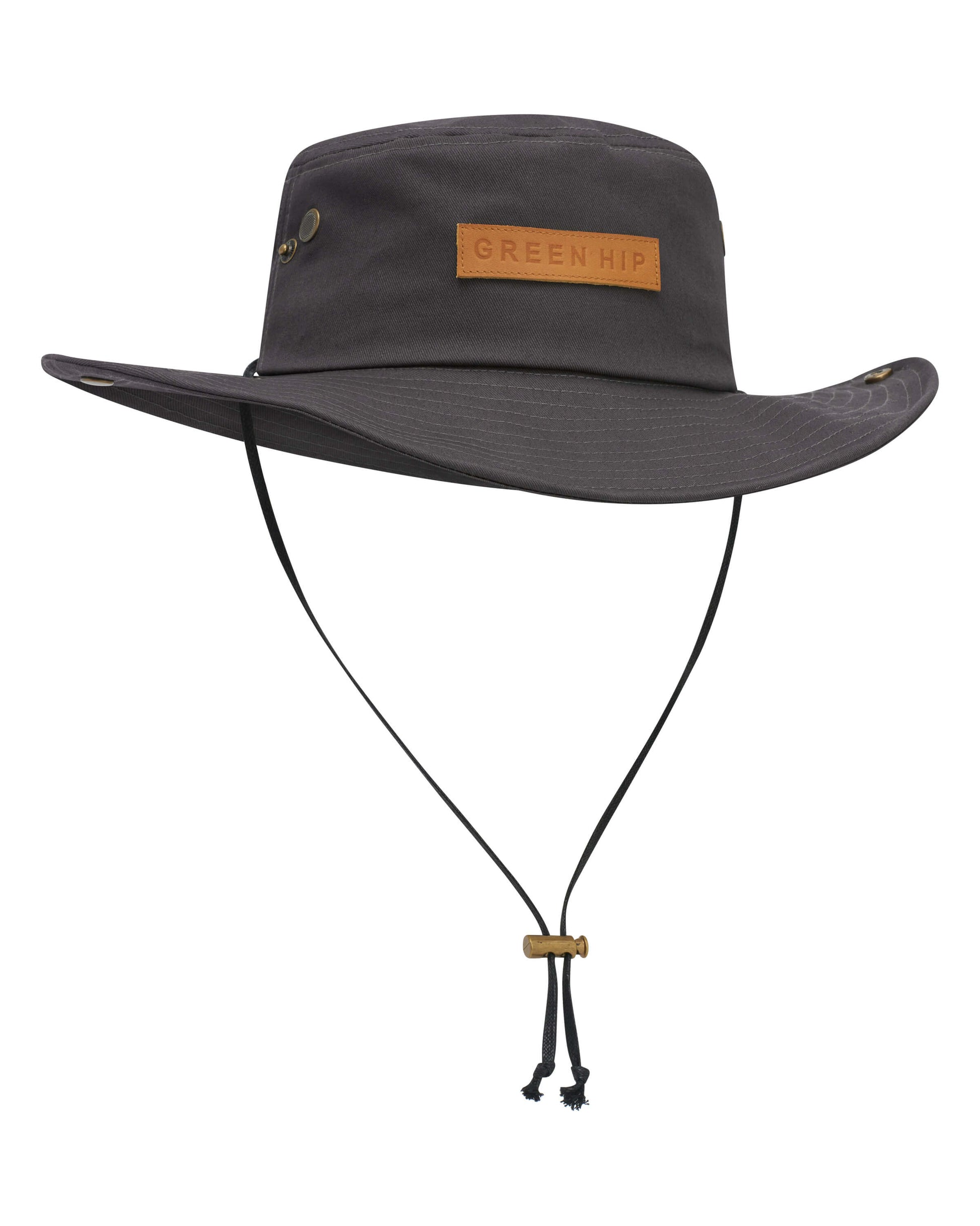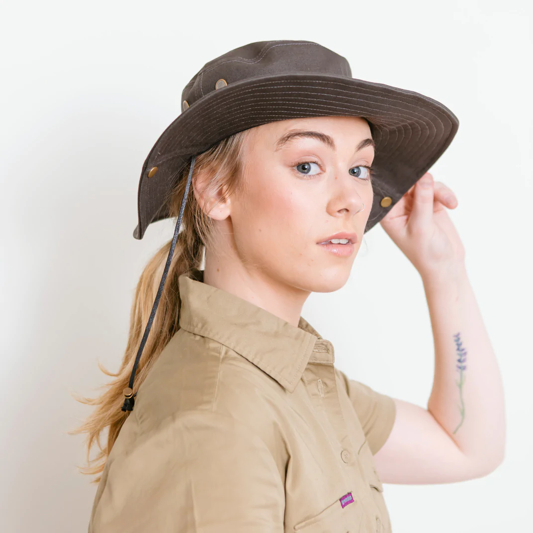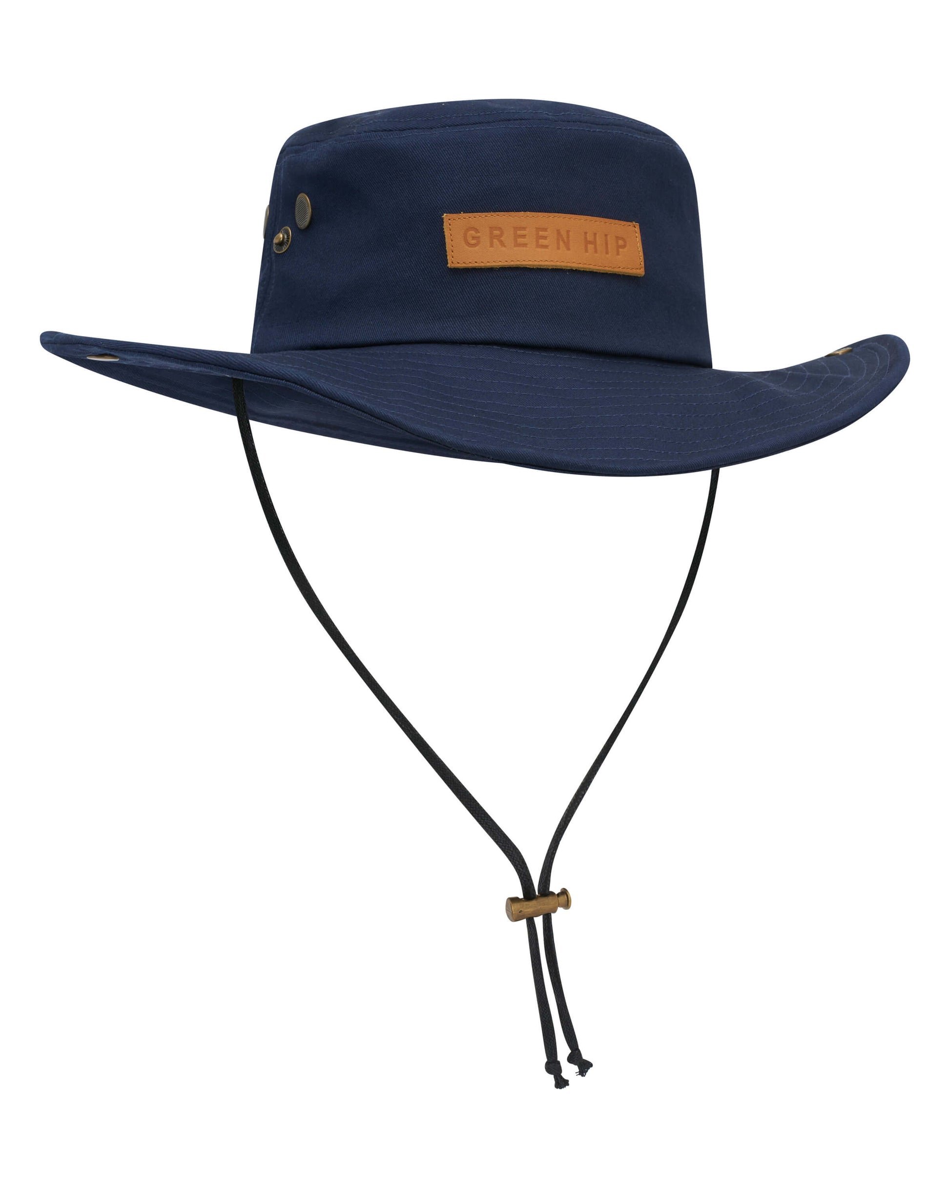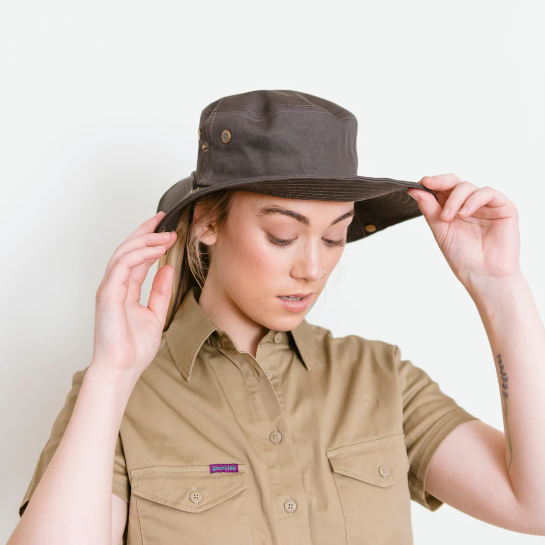 Protect yourself from the elements in style with this Green Hip Broad Rim Hat. Designed for outdoor work, it features eyelit holes for ventilation, a built-in sweatband, and a drawstring for a snug fit.