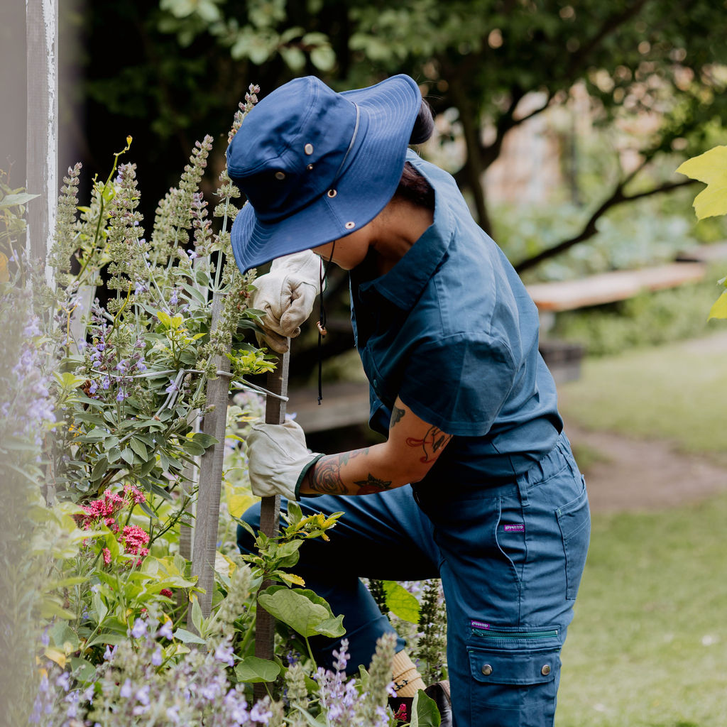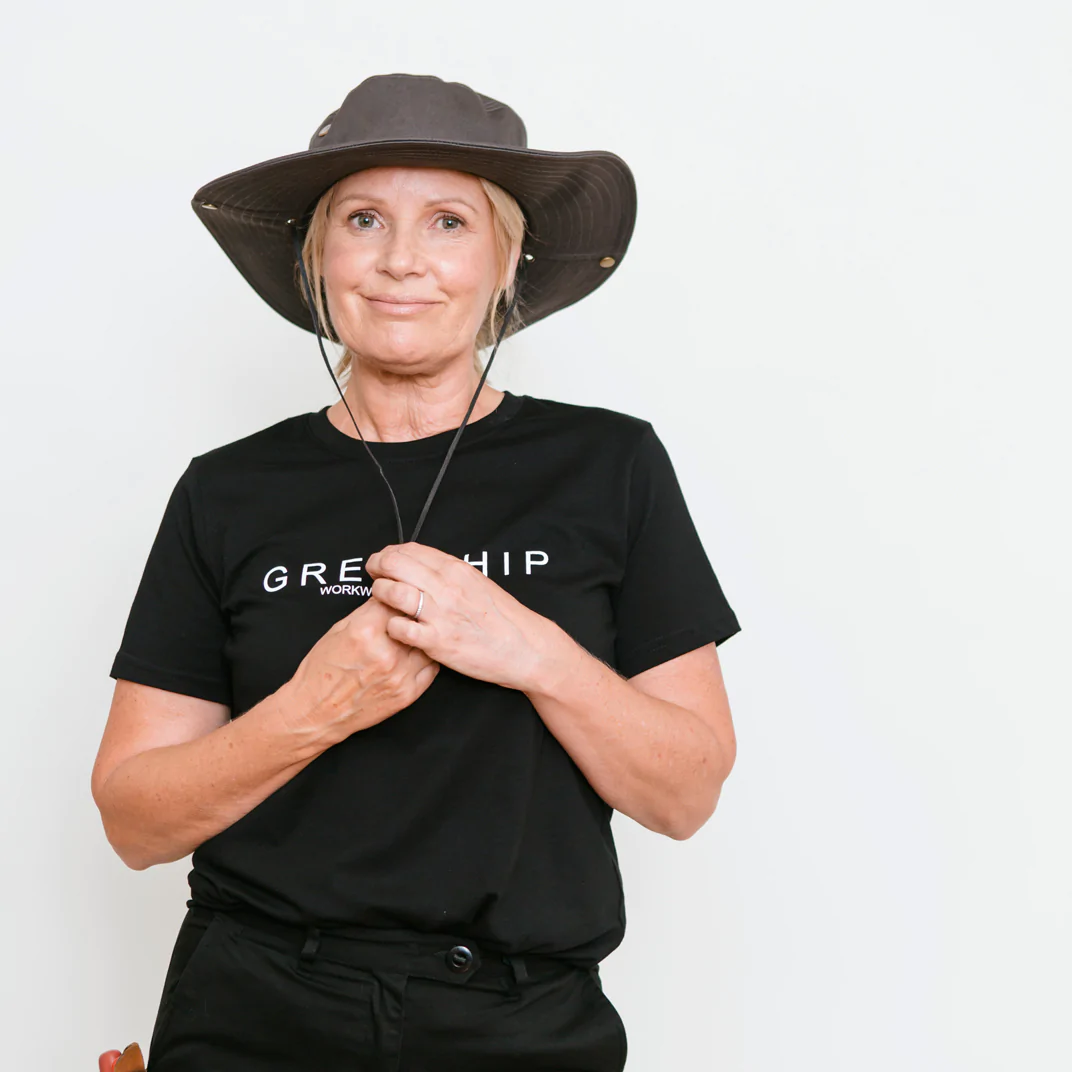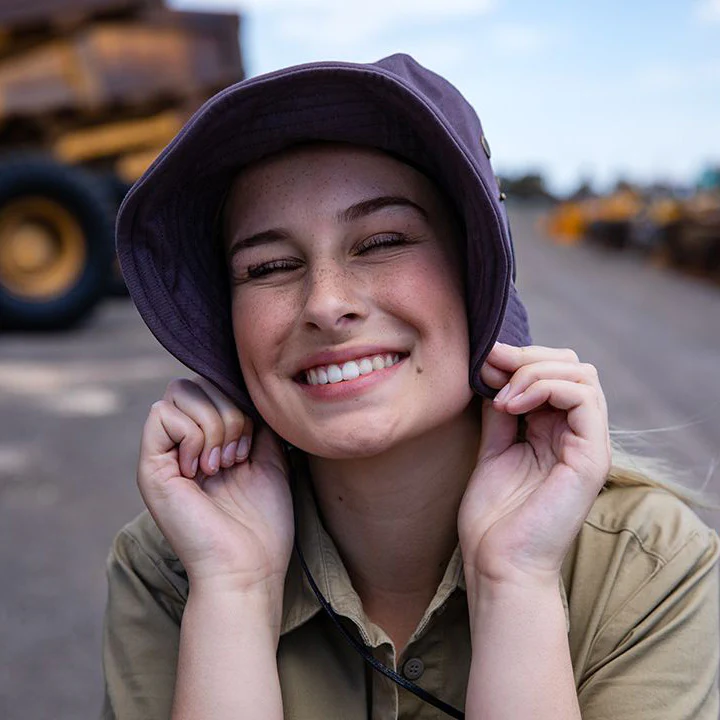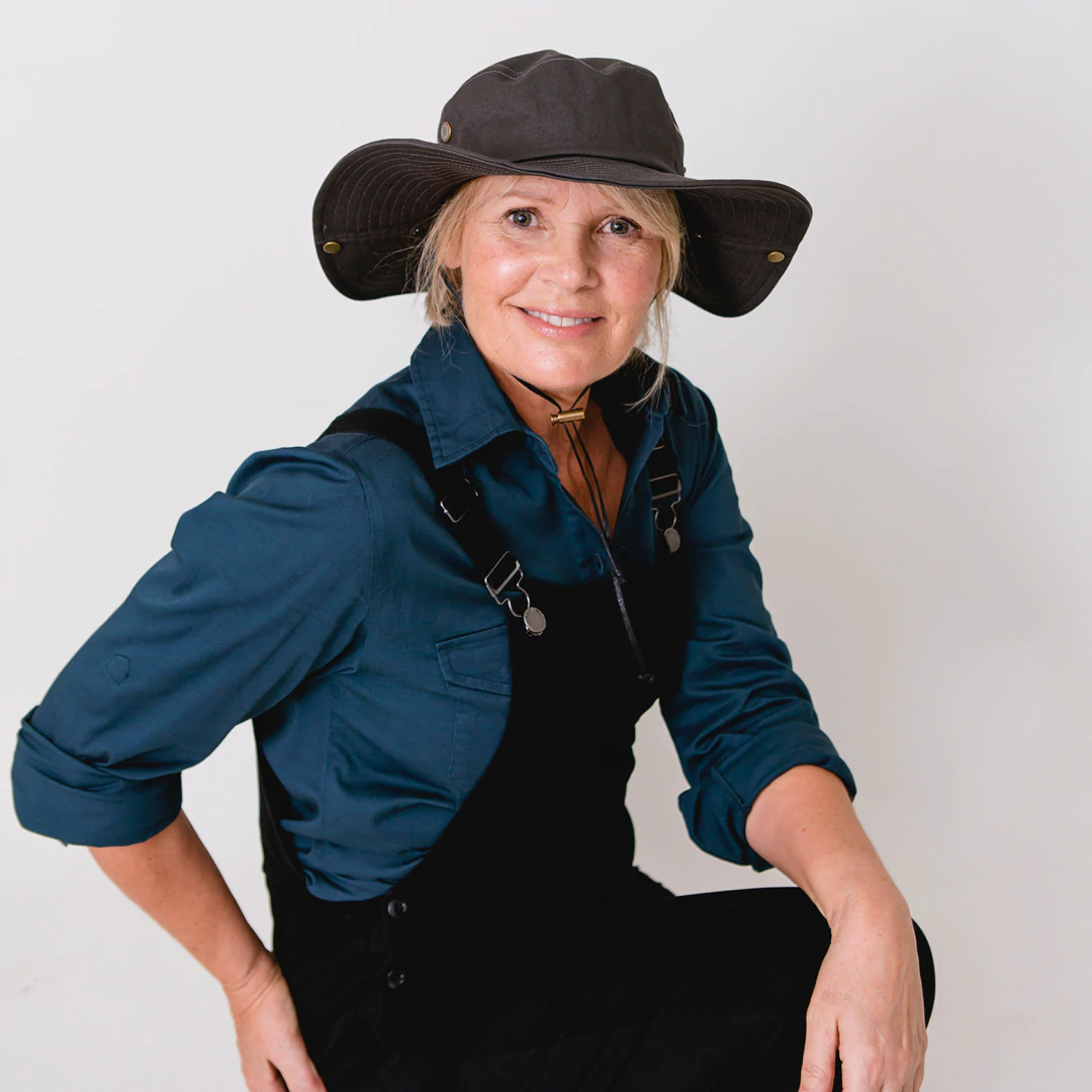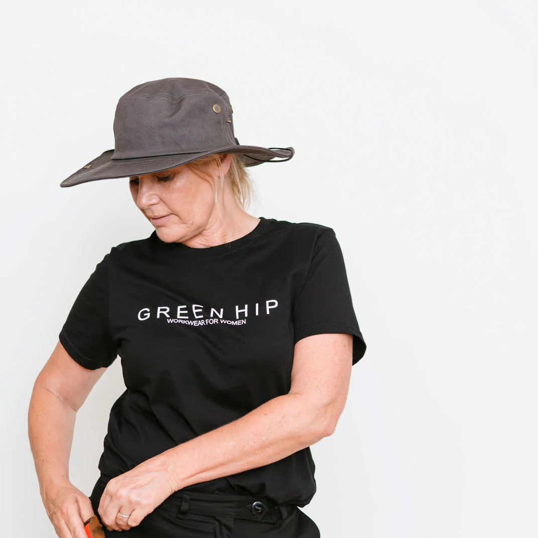 Protect yourself from the elements in style with this Green Hip Broad Rim Hat. Designed for outdoor work, it features eyelit holes for ventilation, a built-in sweatband, and a drawstring for a snug fit.