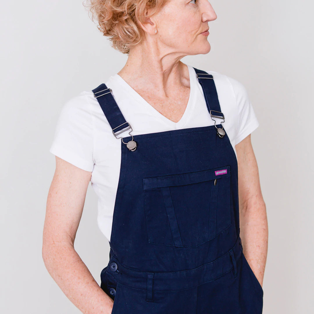 Created with love in Australia, our Overalls make perfect sense for All Women! With adjustable waists for varying weights & pregnancies, plus an action-back bib and brace for easy bending, you'll always feel comfortable in these dungarees. Made of our custom-made cotton stretch fabric, our Overalls are simply irresistible. Pre or post maternity, these dungarees are made to last. Sizing tip: if you're already a Green Hip wearer, go down a size for a more tailored fit.