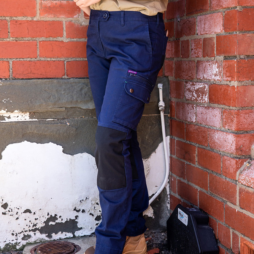 Designed to fit all female body shapes and carefully engineered in Australia. Made with our signature elastic waistband, utility pockets galore and un-stitch me! knee pad function, you're going to love this new tradie focused Limited Edition style. Purchase your knee pads separately and cut down to size.