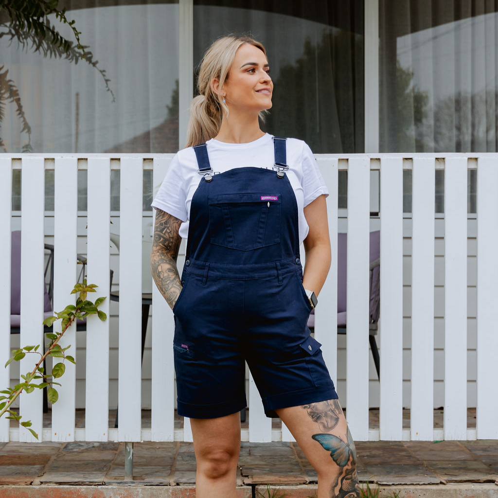 Crafted with custom cotton stretch fabric, the Shortalls are designed to allow you to comfortably move all day long.